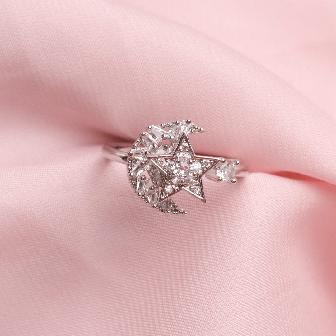Anillo Giratorio Anti-Estres, con baño en Rodio Ajustable.