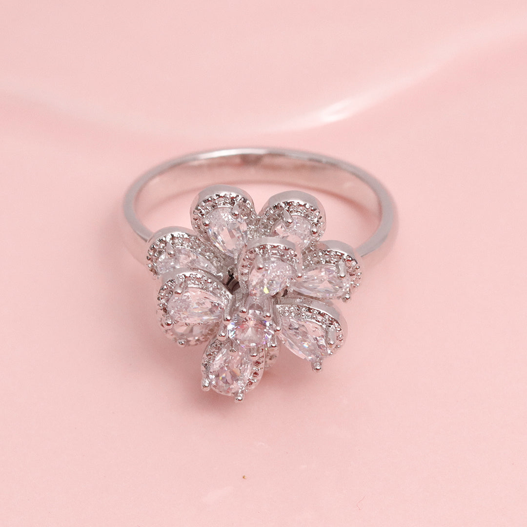 Anillo Giratorio Anti-Estres, con baño en Rodio Ajustable. Plateado.