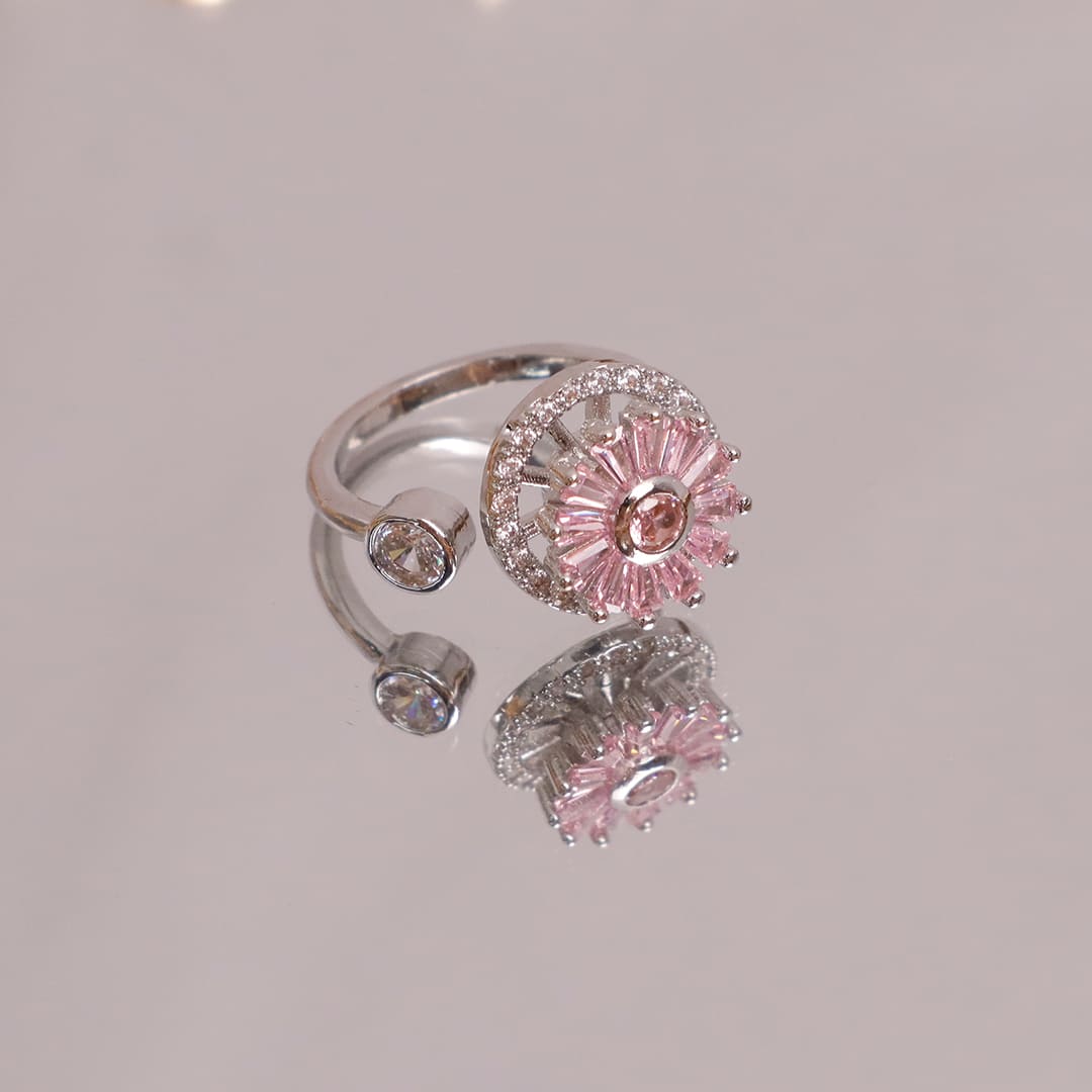 Anillo Giratorio Anti-Estres, con baño en Rodio Ajustable. Plateado.