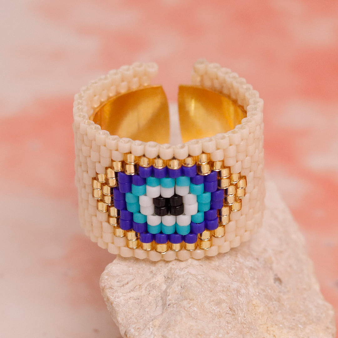_________________ MEXICO: $ 134,7 CHILE: $ 6681,1 DOLAR: 7,05 USD ___________________ ANILLO MIYUKI.Elaborado con miyuki e hilo en la técnica brick stitch o puntada ladrillo.Base ajustable en bronce con baño de oro.Medidas: 2.5 cm de alto.¡HECHO A MANO 100% COLOMBIANO!