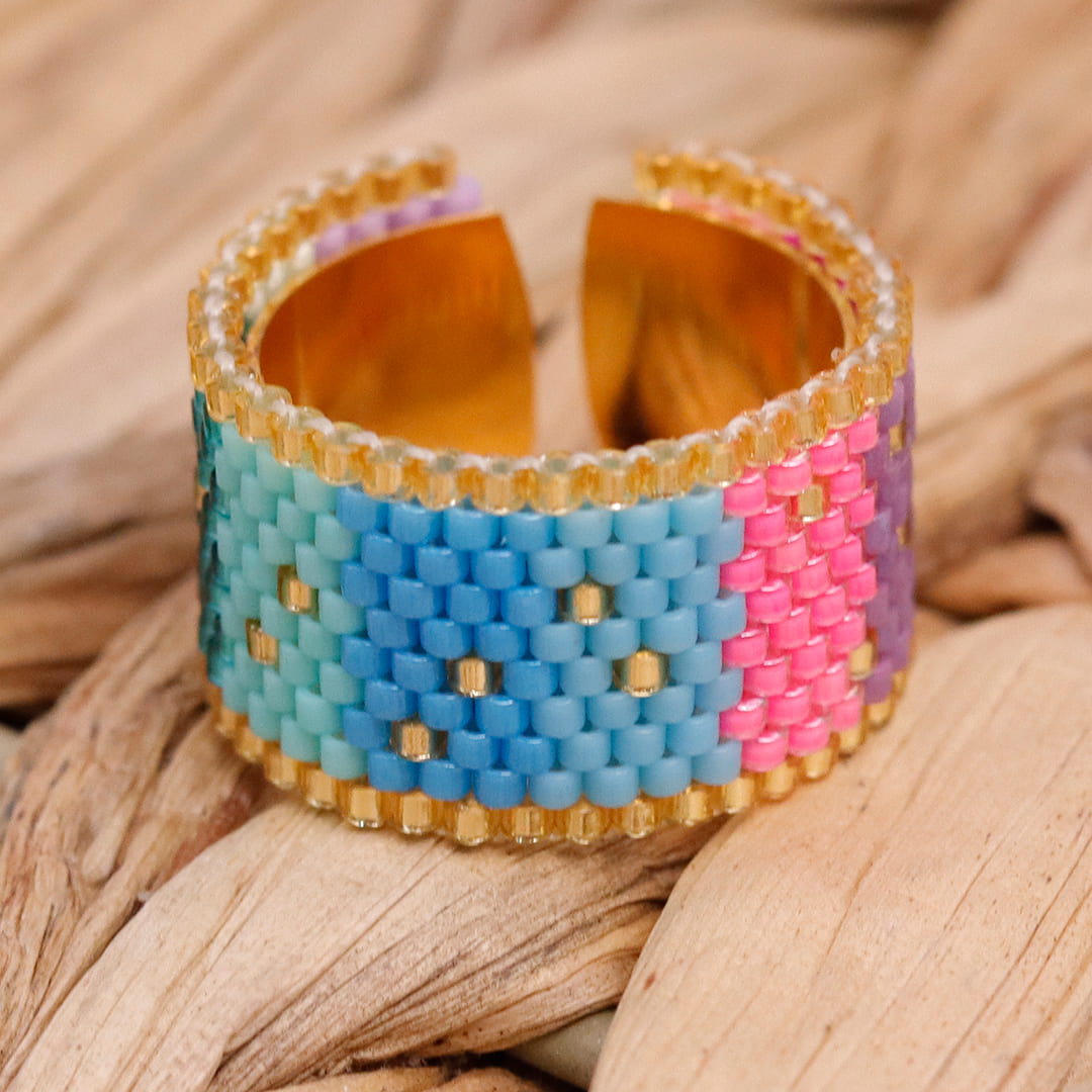 Elaborado con miyuki e hilo en la técnica brick stitch o puntada ladrillo.