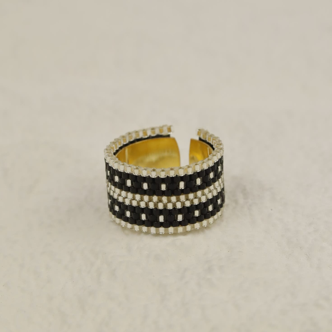 Elaborado con miyuki e hilo en la técnica brick stitch o puntada ladrillo.