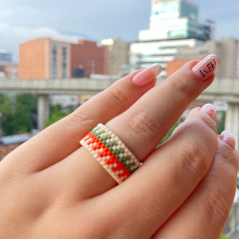 Elaborado con miyuki e hilo en la técnica brick stitch o puntada ladrillo.