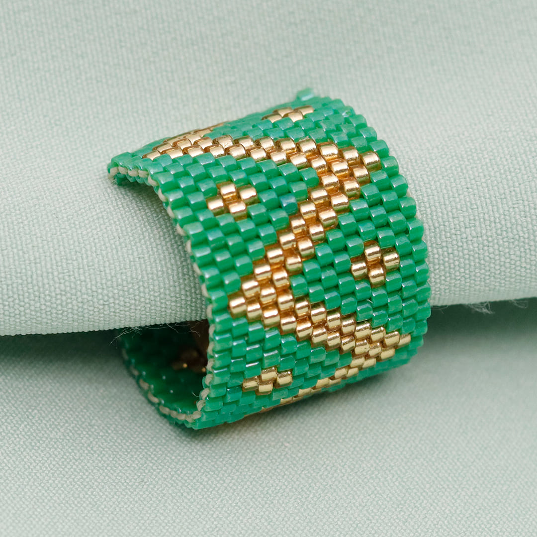 Elaborado con miyuki e hilo en la técnica brick stitch o puntada ladrillo.