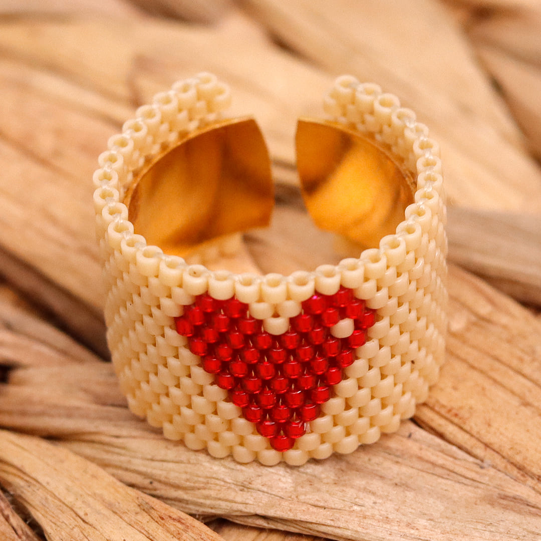 _________________ MEXICO: $ 134,7 CHILE: $ 6681,1 DOLAR: 7,05 USD ___________________ ANILLO MIYUKI.Elaborado con miyuki e hilo en la técnica brick stitch o puntada ladrillo.Base ajustable en bronce con baño de oro.Medidas: 2.5 cm de alto.¡HECHO A MANO 100% COLOMBIANO!