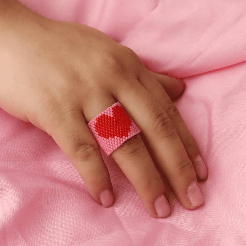 ANILLO MIYUKI. Elaborado con miyuki e hilo en la técnica brick stitch o puntada ladrillo. Base ajustable en bronce con baño de oro. Medidas: 2.5 cm de alto.¡HECHO A MANO 100% COLOMBIANO!