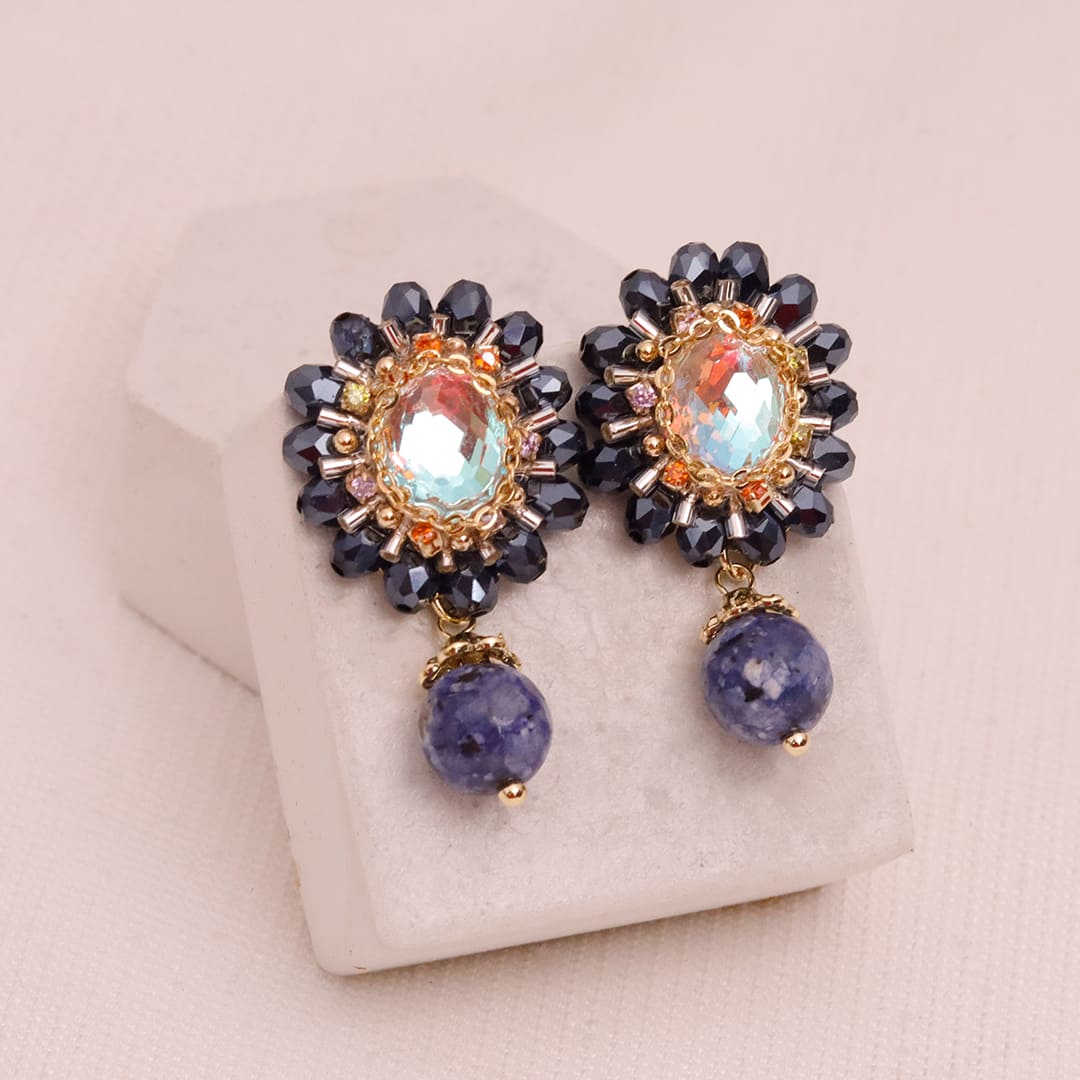Arete con Cristal, Topo con baño en Rodio.