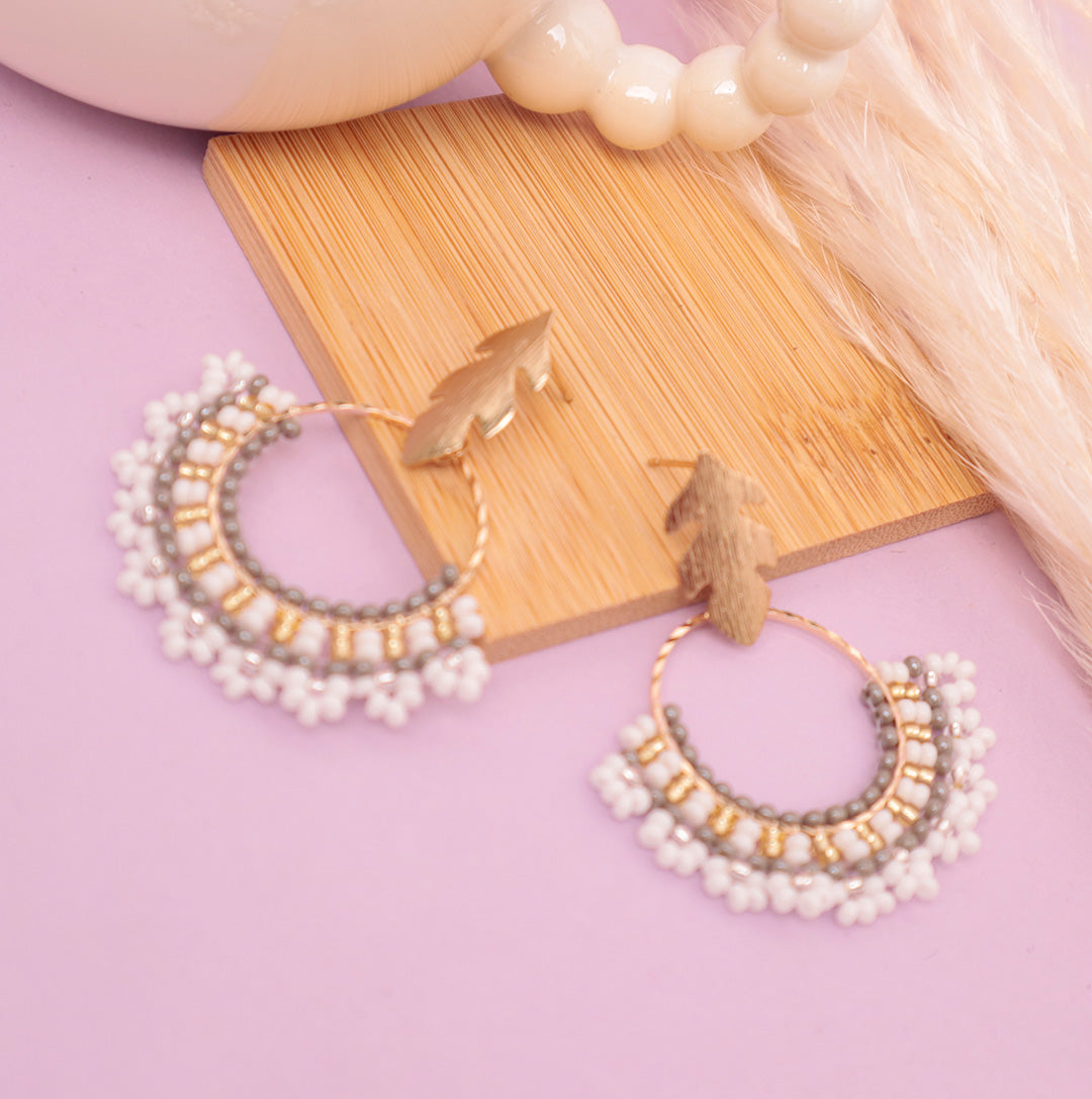 Arete elaborado con nylon de pesca y mostacilla checa.